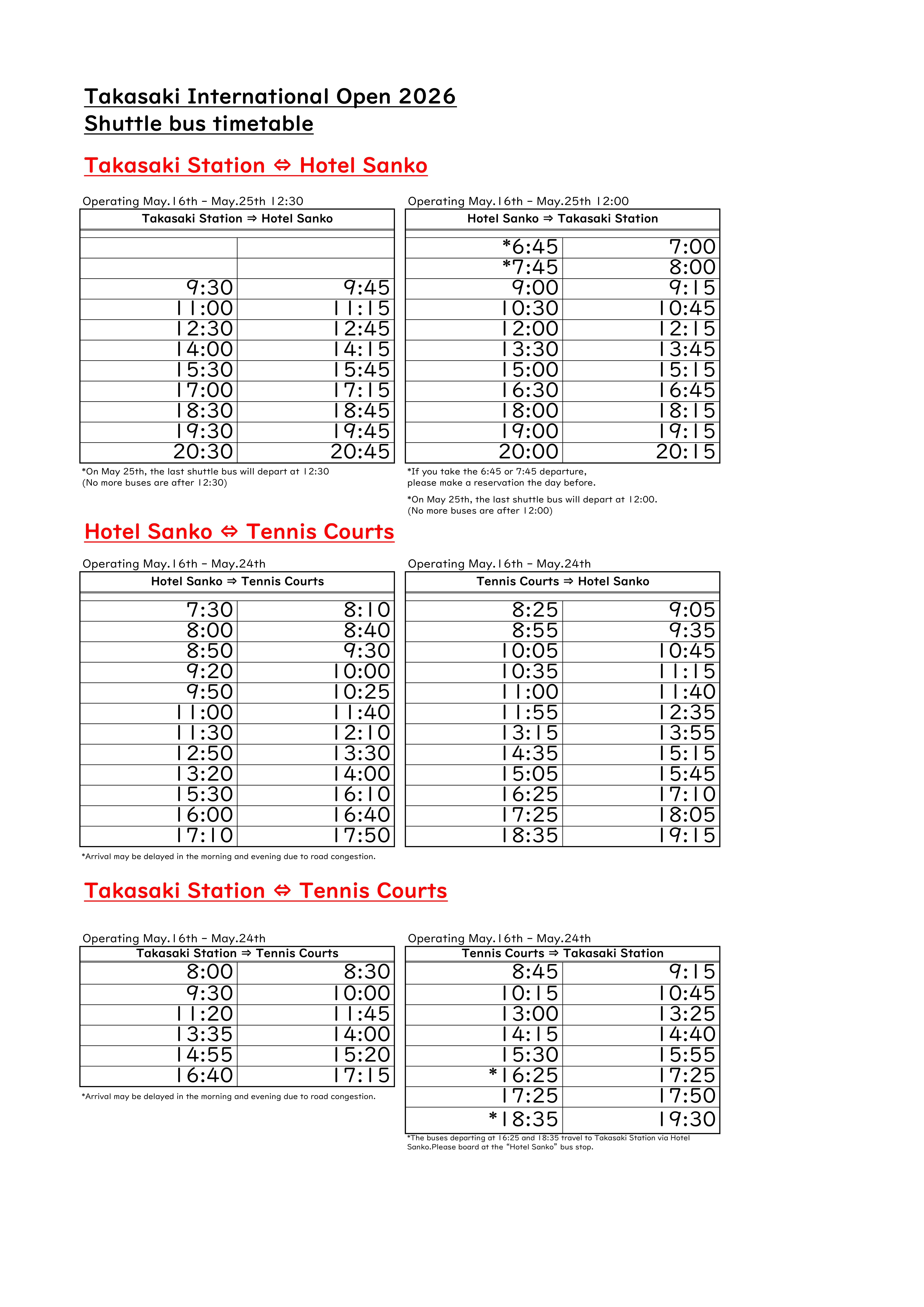 Shuttle Service: Free shuttles from Takasaki Station start May 16th.