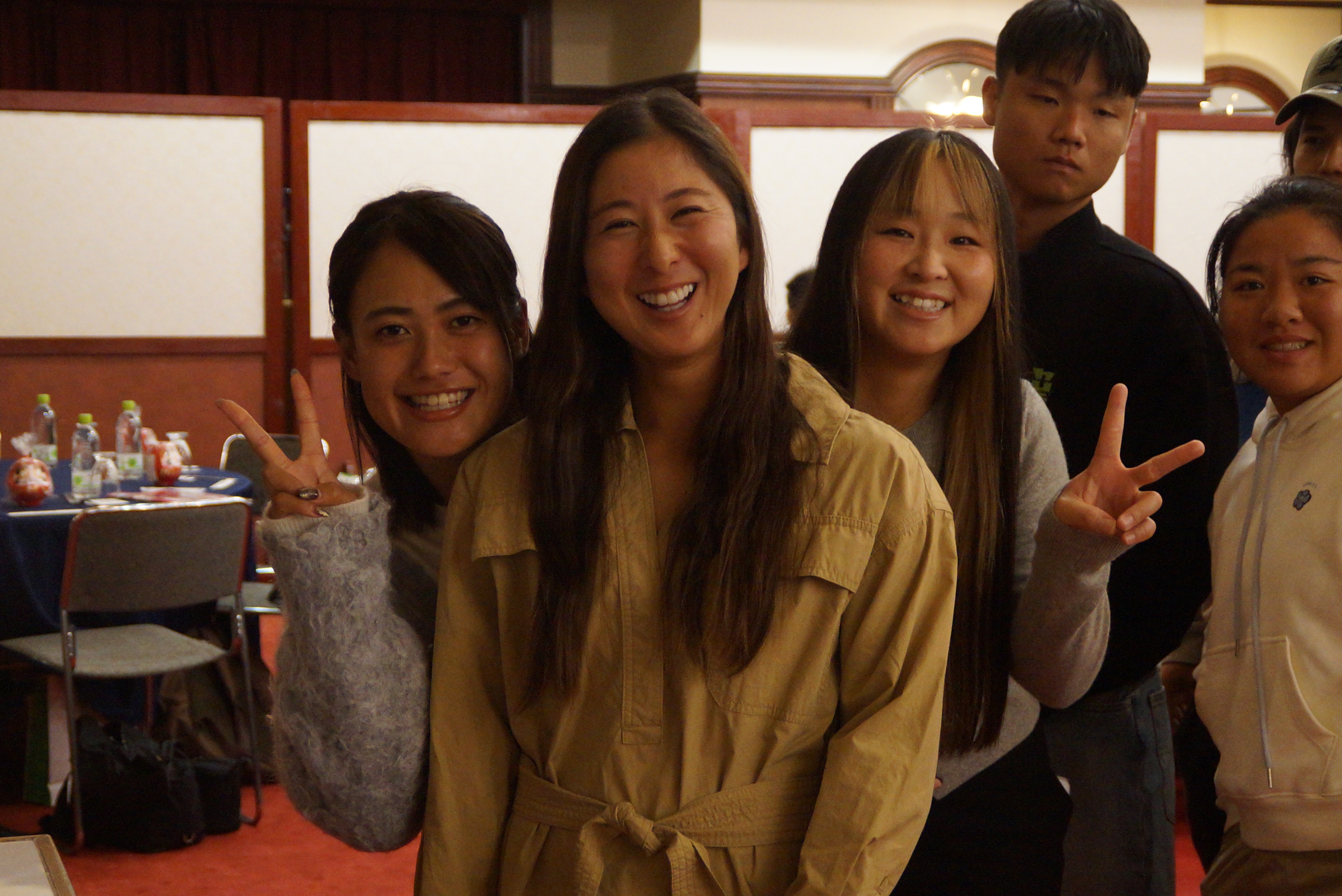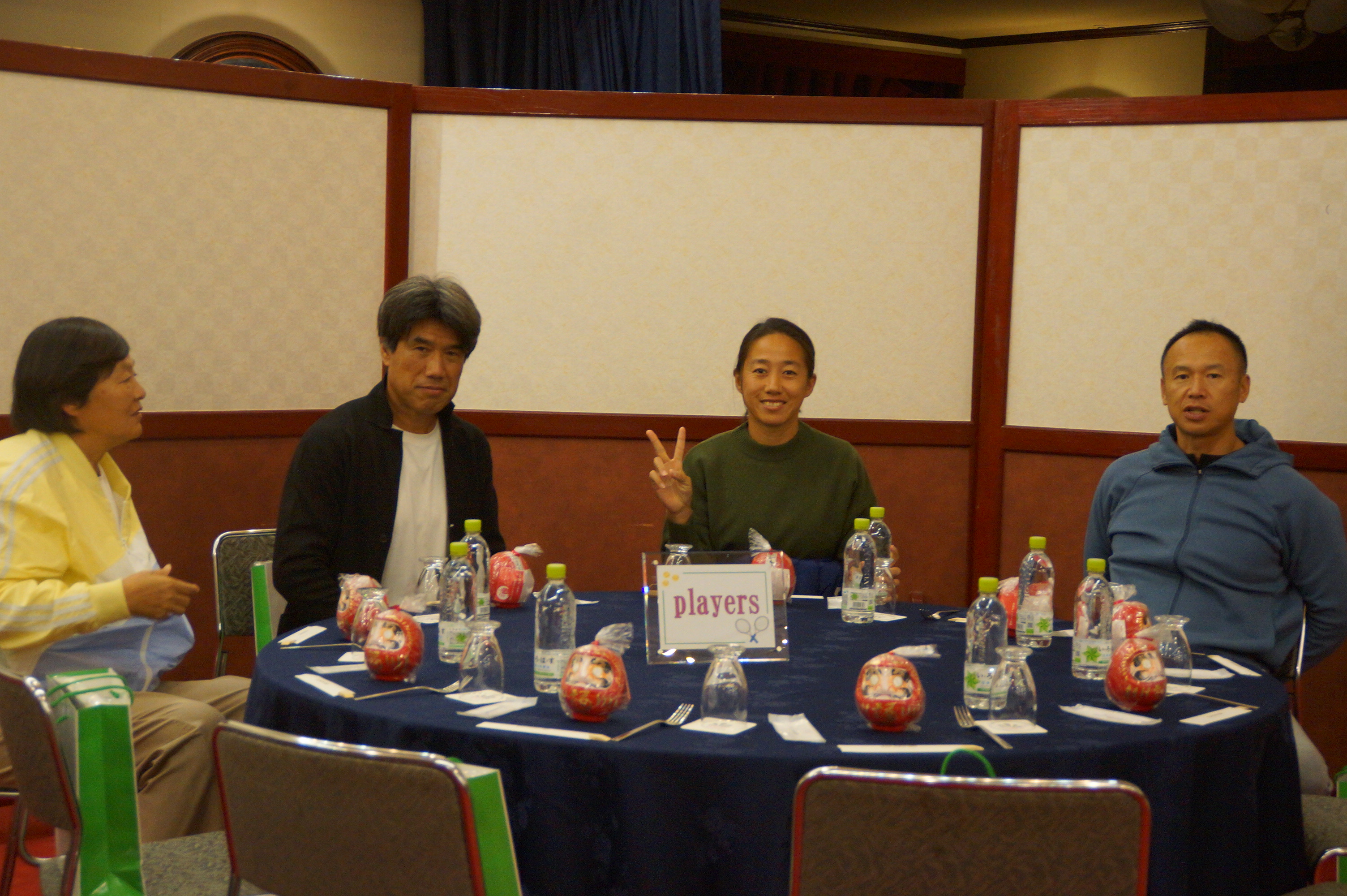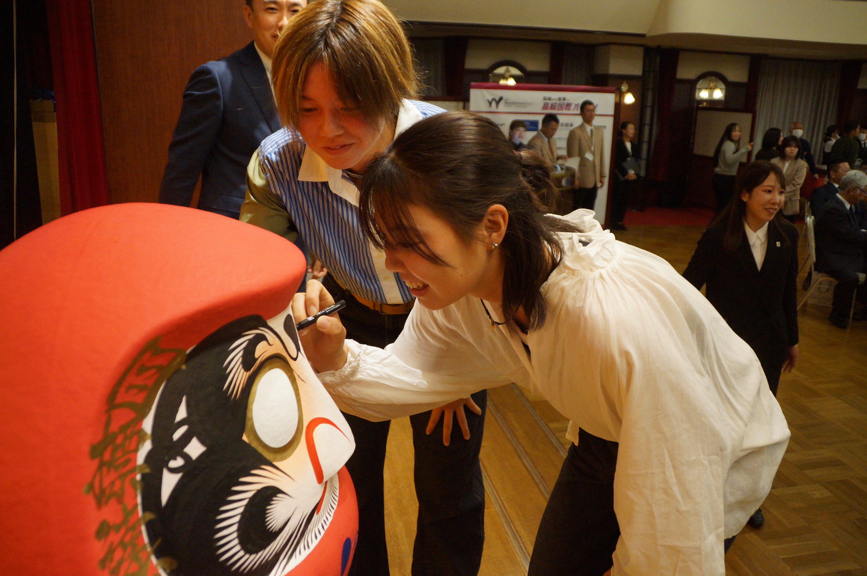 レセプションパーティでは多くの選手に参加いただき、食事を楽しんでもらい清水綾乃選手の代表スピーチ、パーティの最後には高崎だるまにザン・シューアイ選手や数名の選手に目入れをしていただきました!