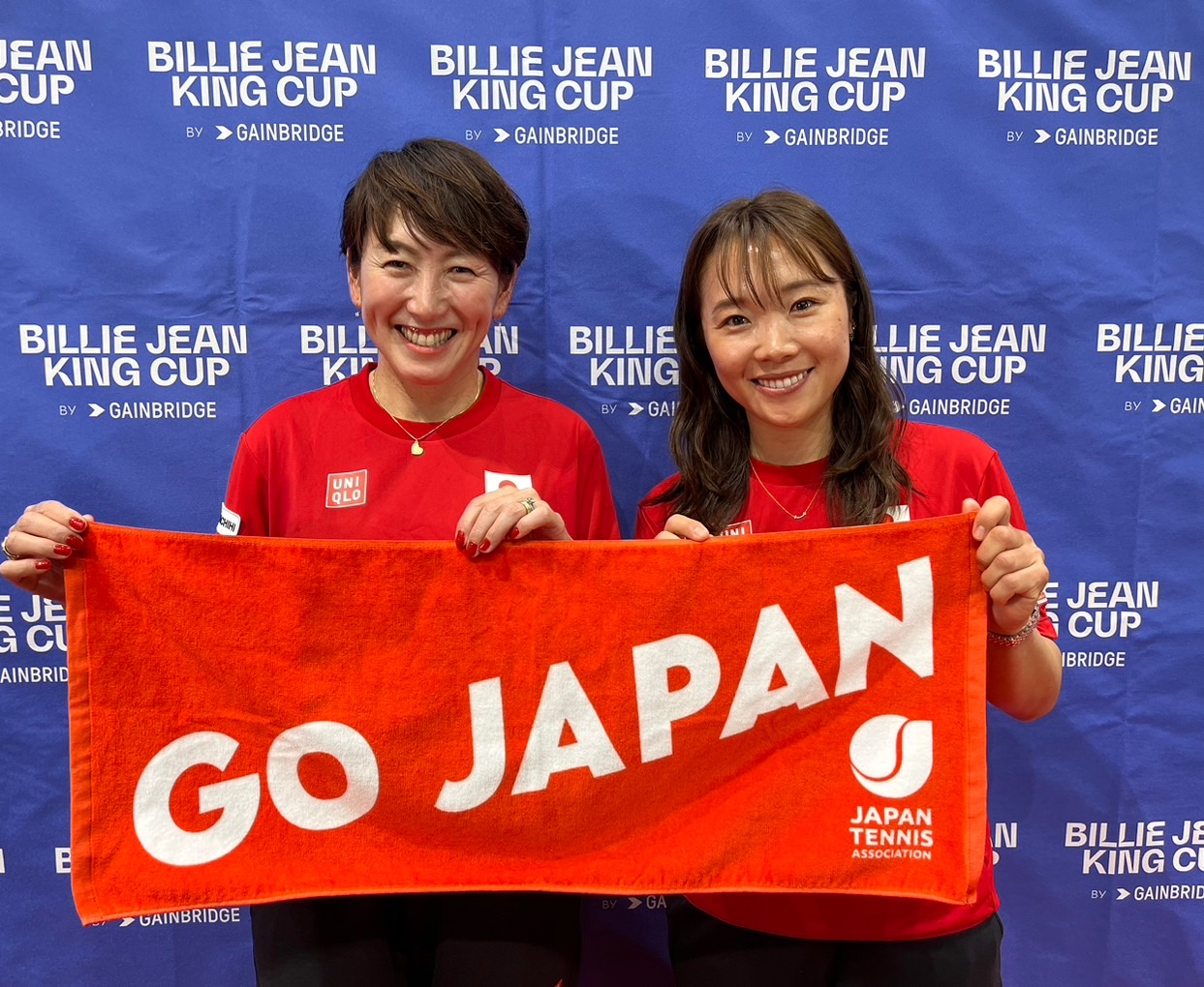 背中のJAPANの文字は国際テニス連盟指定のフォントで作成しています。Tシャツを着用し、温かいご声援をお願いいたします!