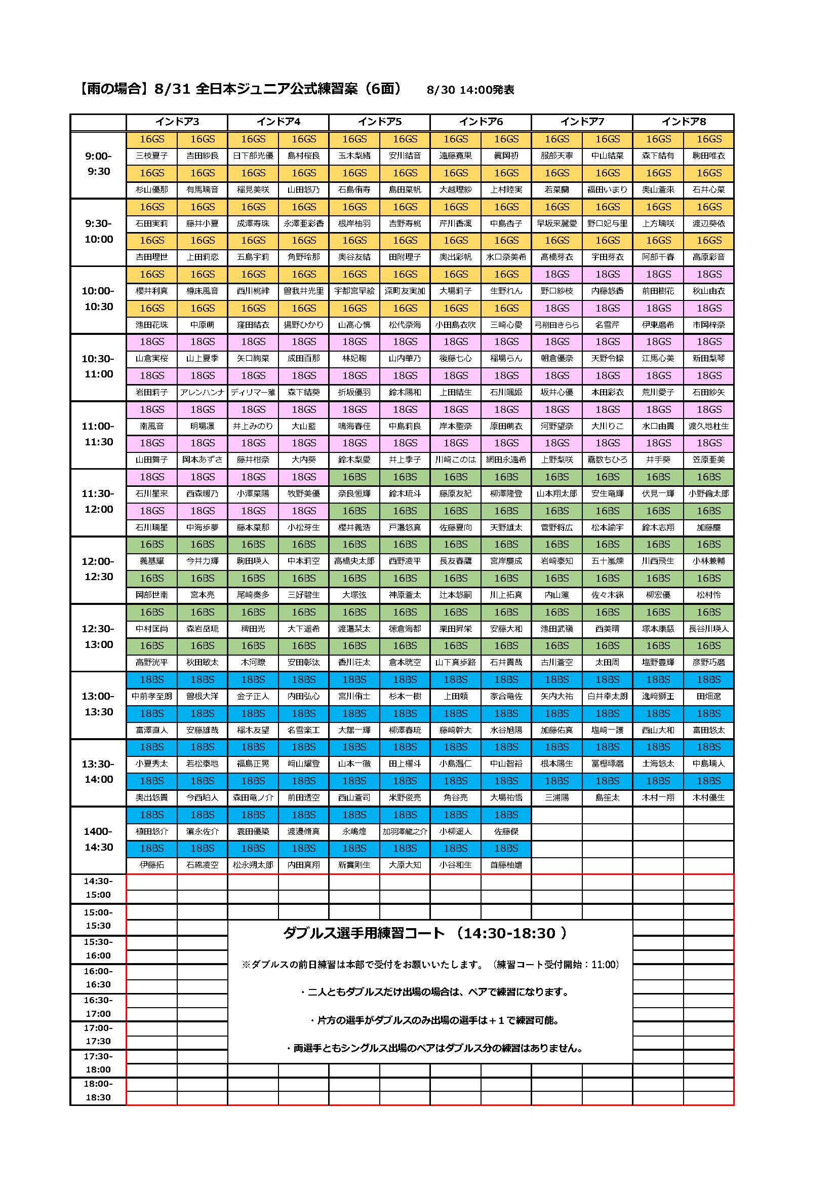 8月25日の練習スケジュールを公開しました。(8/24現在)