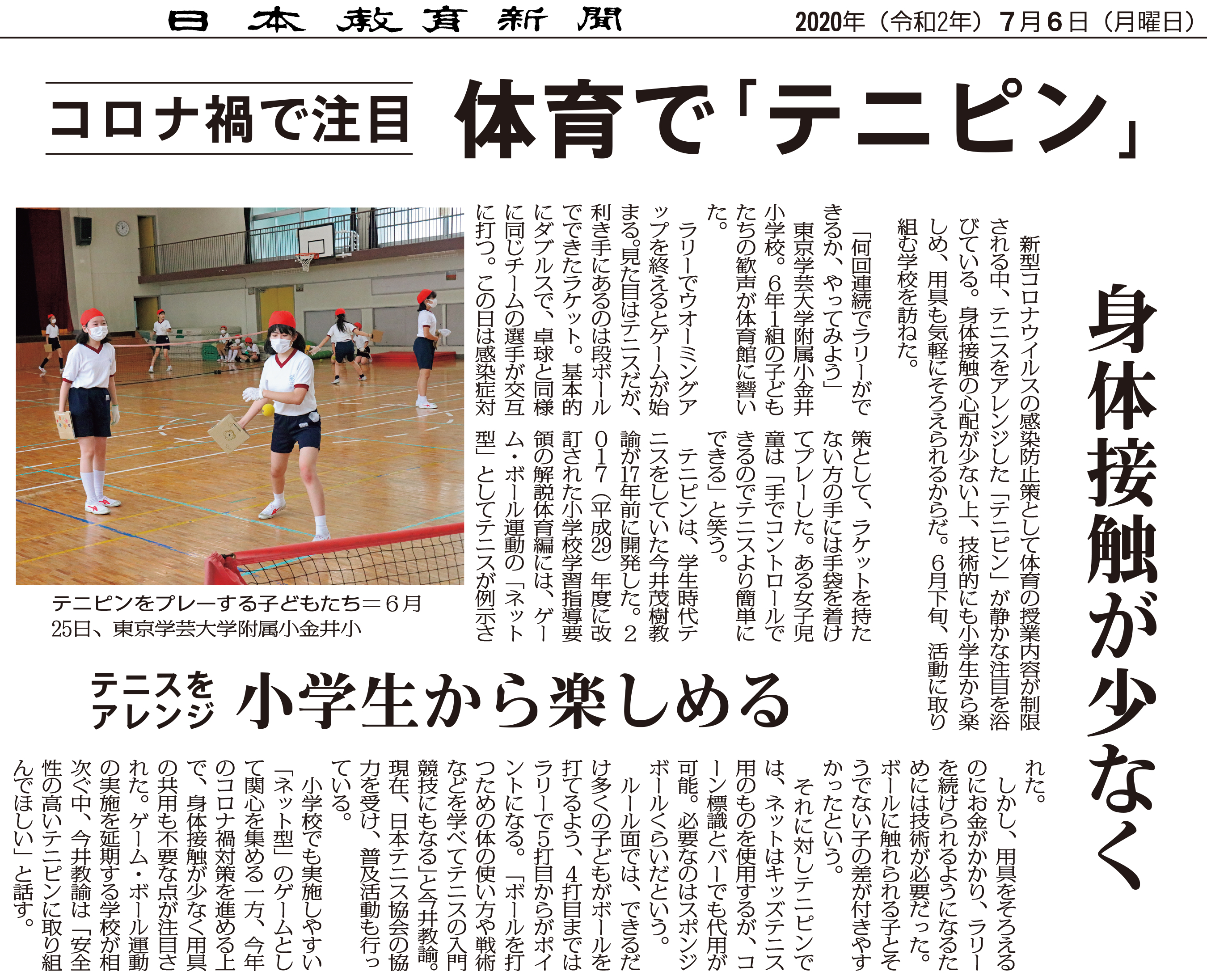 ●2020年7月6日付けの日本教育新聞でテニピンが取り上げられました (クリックすると大きく表示されます)